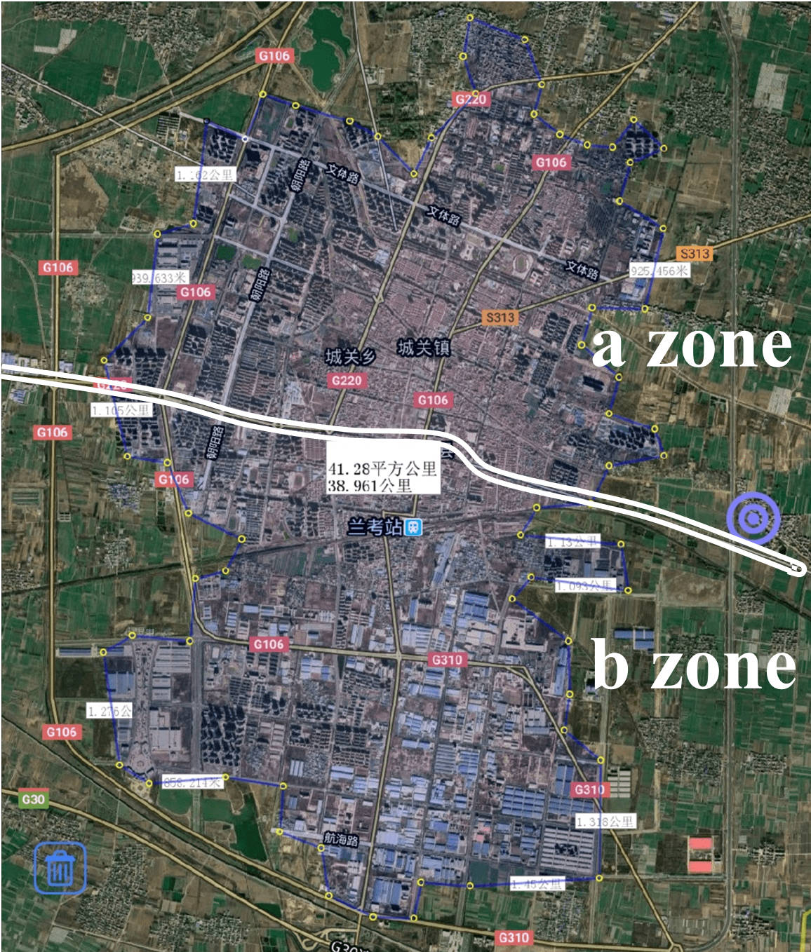 - ( 1 ) — Transfer station to the end of the recycling line. According to the satellite map measurement, Lankao County urban area is 41.2 square kilometers.Taking Bianlan Avenue-Zhongshan Avenue, the central road running through the east and west of the city, as the boundary, the city is divided into north and south zones, and all the transfer station garbage to garbage recycling company in a/b zone is taken care of by a group of cars.