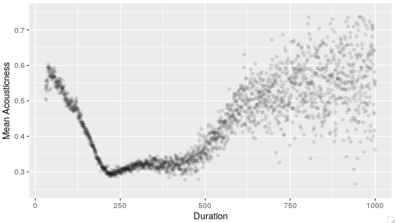 p <- p + aes(x = duration, y = mean_acousticness)